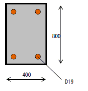 鉄筋重心位置dt=40mm + 19/2=49.5mmとなります。設計する場合は細かすぎる値なので、余裕を持ってdt=50や60とします。